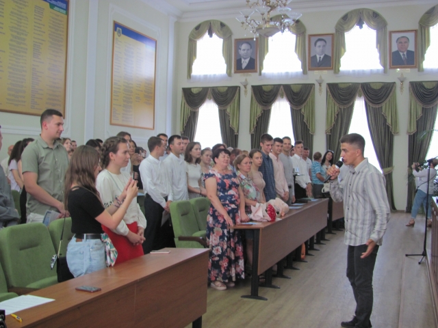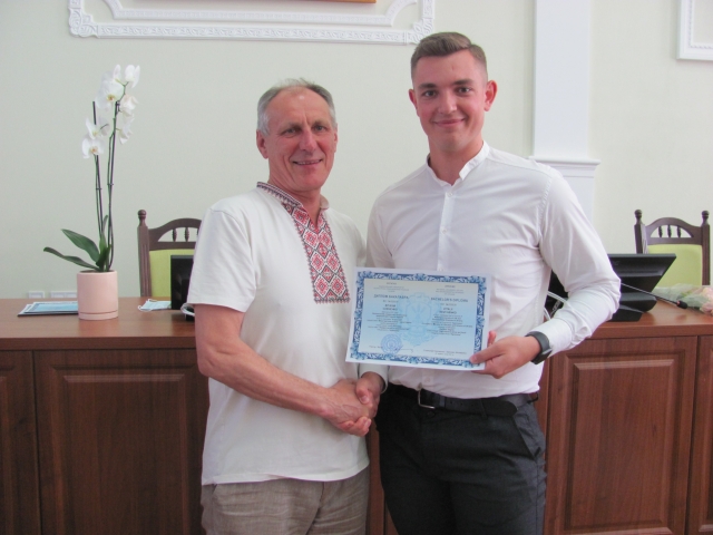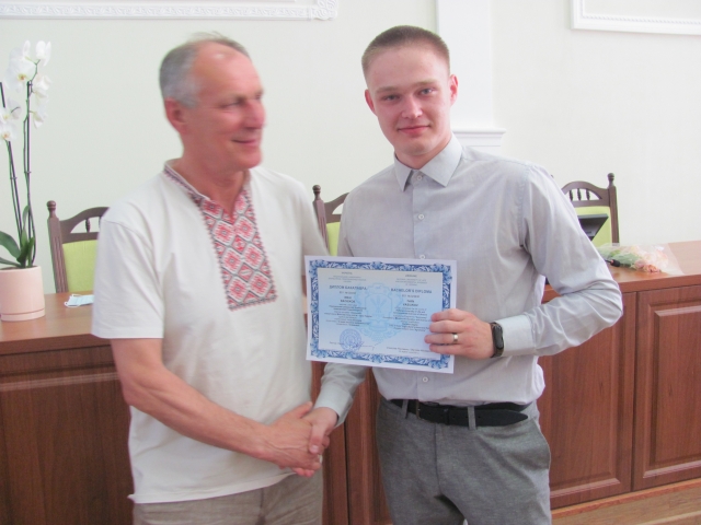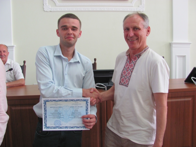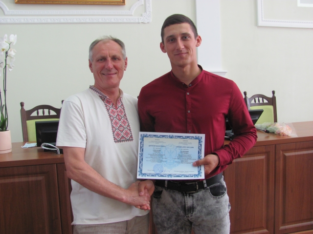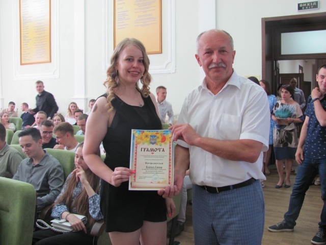 Розпочалося свято вручення дипломів звучанням державного гімну України. Далі з вітальним словом до випускників звернувся проректор з науково-педагогічної роботи та розвитку Сергій Кваша, який побажав випускникам бути успішними людьми, професіоналами своєї справи, пройти шлях мудрості і відповідальності, усі непорозуміння залишити позаду, самоудосконалюватись і наголосив на необхідності продовжити навчання в магістратурі. Сергій Миколайович особисто вручив грамоти за досягнення у навчанні, активну участь у громадському житті факультету, культурно-масовій роботі та спорті.