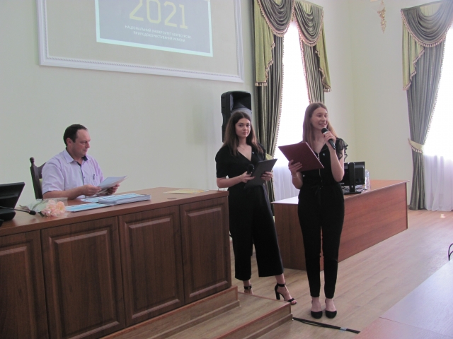 Після цього декан факультету Оксана Тонха зачитала наказ «Про закінчення навчання». Дипломи випускникам вручали декан, завідувачі та викладачі випускових кафедр факультету.