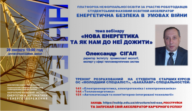 Дирекція інституту висловлює Олександру Сігалу слова щирої подяки за його внесок у фахове становлення студентської молоді, адже саме їй будувати нову країну, країну з новою енергетикою.