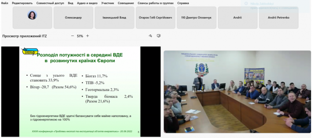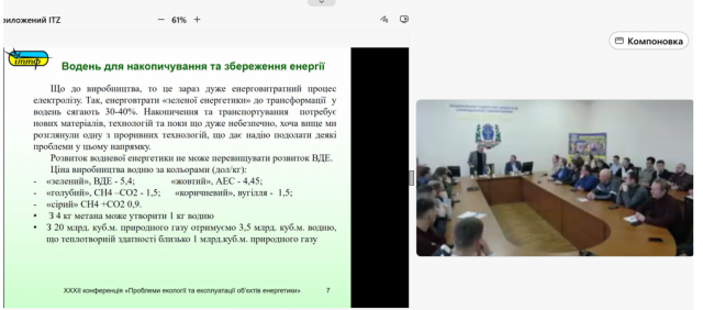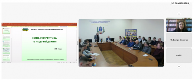 Особливо цікавою була частина доповіді, у якій доповідач розкрив особливості розвитку відновлюваної енергетики, технологій одержання «зеленого» водню, використання біомаси та шляхів декарбонізації енергетичної галузі.