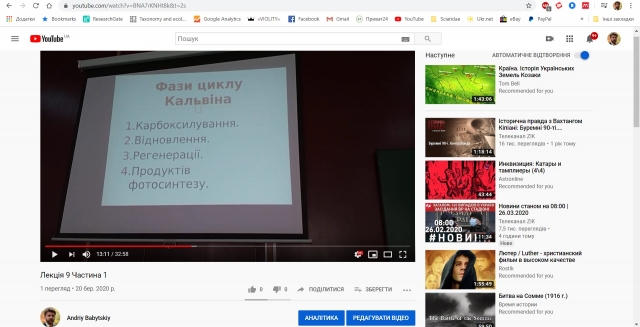 З лекціями Андрія Бабицького по фізіології рослин студенти також ознайомлюються на його You Tube каналі (https://www.youtube.com/feed/my_videos).