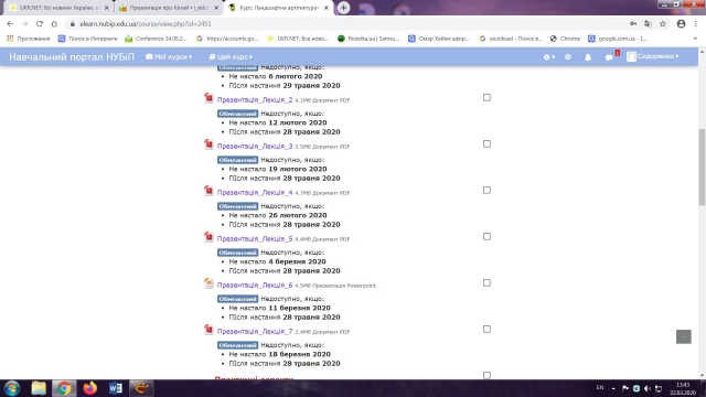 Доцент кафедри Ірина Сидоренко повідомила про те, що дистанційне навчання з дисципліни «Ландшафтна архітектура» відбувається також на основі платформи еlearn та спілкування електронною поштою. Для студентів розроблено курс лекцій у вигляді презентацій з текстовим та ілюстративним матеріалом та надано завдання для всіх запланованих навчальним планом лабораторних робіт.