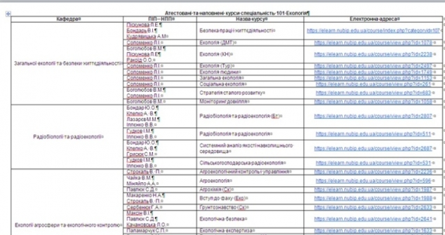 На кафедрі загальної екології та безпеки життєдіяльності до Навчального порталу НУБіП студентів активно залучає завідувач кафедри, професор Володимир Боголюбов за дисциплінами "Моніторинг довкілля" і "Екологія".