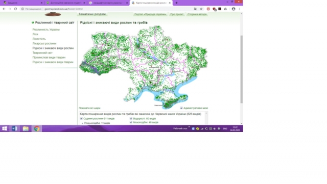 Згідно з розкладом, дистанційно проведено 2 пари практичних занять на платформі е-learn за темами 7-8 «Оцінка природно-заповідного фонду України» та «Рідкісні та зникаючі рослини України, що зустрічаються в зеленій зоні м. Києва».