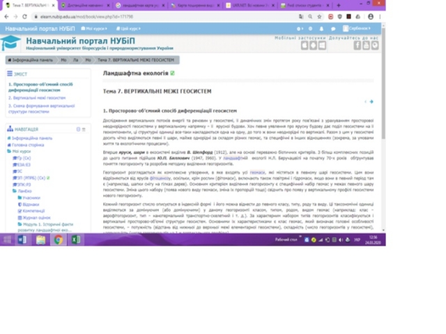 Що стосується дисципліни «Ландшафтна екологія» (старший викладач кафедри екології агросфери та екологічного контролю Ганна Сербенюк), що викладається для студентів ОС Бакалавр 2 курсу І, ІІ груп за спеціальністю 101 Екологія, то активність роботи студентів з даним курсом складає 72 %.