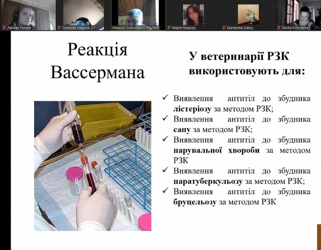 Лекційні та лабораторні заняття з дисципліни «Ветеринарна імунологія» для студентів 2 курсу ОС "Магістр" факультету ветеринарної медицини проводяться згідно навчального розкладу та відповідно до календарного плану дисципліни у форматі оn-line з використанням платформи Webex та Zoom.