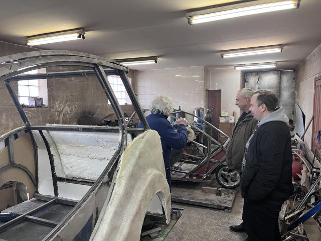 Представники кафедри тракторів, автомобілів та біоенергоресурсів у складі завідувача Євгена Калініна та доцента Івана Колєсніка відвідали майстерню Едуарда Рудіка.