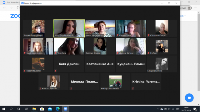 Ось і сьогодні, 20 серпня наставники академічних груп 2 курсу 1,3 груп доценти Кудрявицька Аліна Миколаївна, Піскунова Лариса Едуардівна провели онлайн зустріч‑ виховну годину зі своїми студентами.