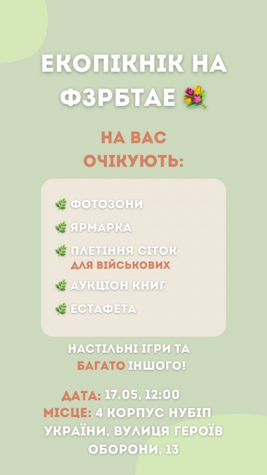 Екопікнік на факультеті захисту рослин, біотехнологій та екології!
