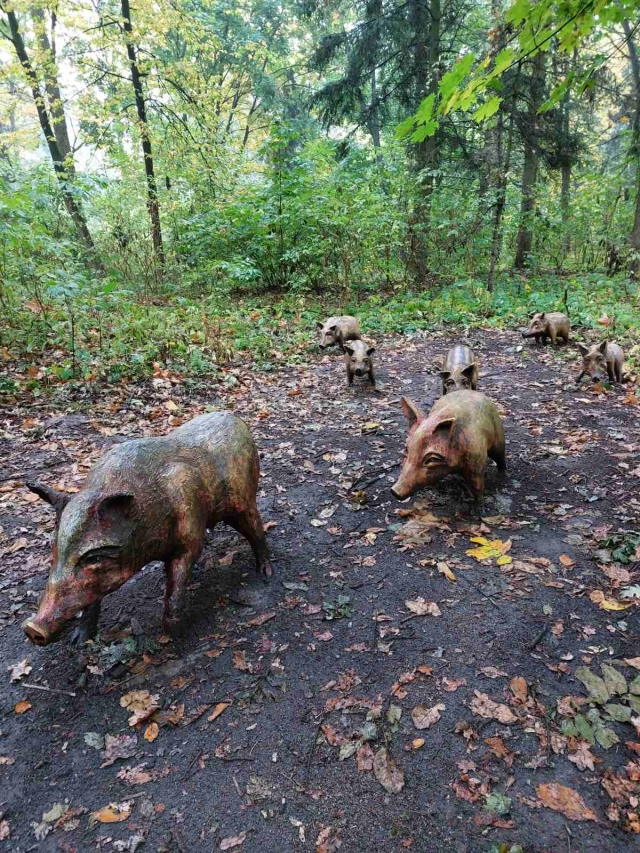 Заповідну територію гармонійно доповнює велика кількість найрізноманітніших скульптур з дерева та інших матеріалів. Серед них можна побачити навіть доісторичних тварин: сніжну людину або ж родину динозаврів.