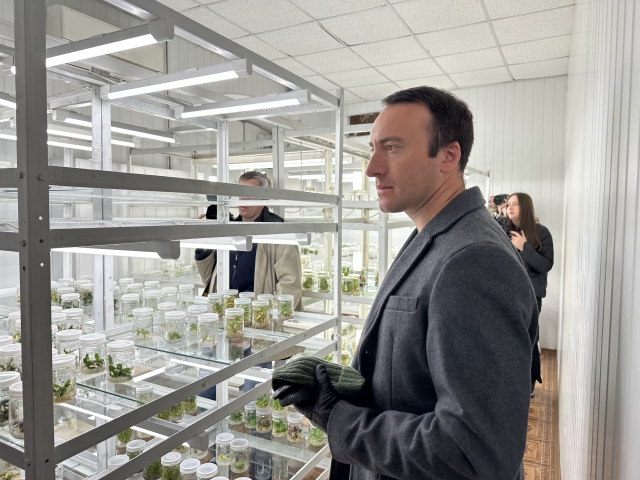 Серед наукових напрямків діяльності лабораторії особливе місце займають дослідження, спрямовані на молекулярно-генетичну ідентифікацію фітопатогенів культурних рослин, розробку біотехнологічних методів підвищення стійкості рослин до біотичних та абіотичних стресових факторів, а також технологій відновлення забруднених внаслідок військових дій біоценозів. Завідувачка кафедри провела коротку екскурсію лабораторією, показала та розповіла про колекцію рослин у культурі in vitro, яка налічує близько 40 різних видів та сортів ягідних, декоративних, технічних та екзотичних рослин.