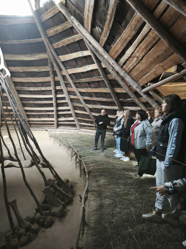 Дуже цікаво було ознайомитись із пам`ятками народної архітектури, яких на території музейного комплексу просто неба (а це близько 25 гектарів) розташовано понад 120. Ми побачили житло ранніх слов’ян, житло наших пращурів X-XIII століть, двори із хатами та господарськими будівлями, металургійні горни I-II ст.н.е., вітряні млини, знаряддя праці, побутові речі, твори народного мистецтва, зібрані в лісостеповій зоні України, старовинну корчму, козацьку залогу (фортифікаційну споруду козаків), Половецьке святилище XII століття, навіть фрагмент стоянки пізнього палеоліту з кістками мамонтів! Все це викликало здивування і захоплення.