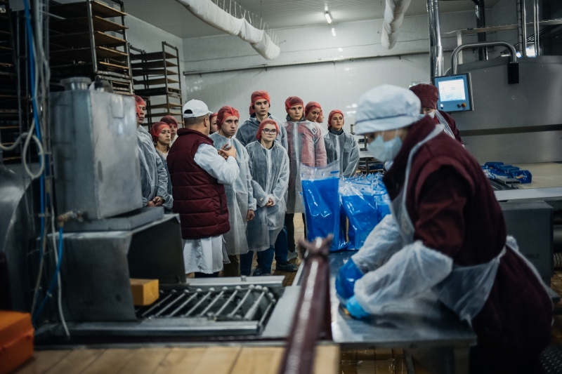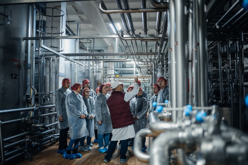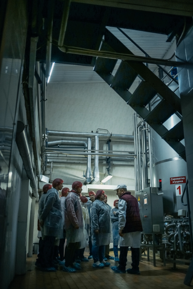 Під час екскурсії підприємством відвідувачі мали змогу ознайомитися з усіма ланками технологічного процесу виробництва сирів та сухої сироватки – від приймання сировини до зберігання готової продукції. На кожній ділянці виробництва співробітники давали відповіді на численні запитання майбутніх технологів з виробництва та переробки продукції тваринництва.