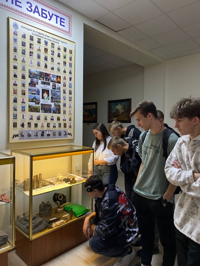 З болем і вдячністю розглядали студенти стенди та експонати присвячені боротьбі нашого народу й студентів університету з фашистськими загарбниками під час Другої світової війни і, особливо, експонати, що стосуються війни, розв’язаної росією з нашою країною, фотографії полеглих студентів і співробітників університету.