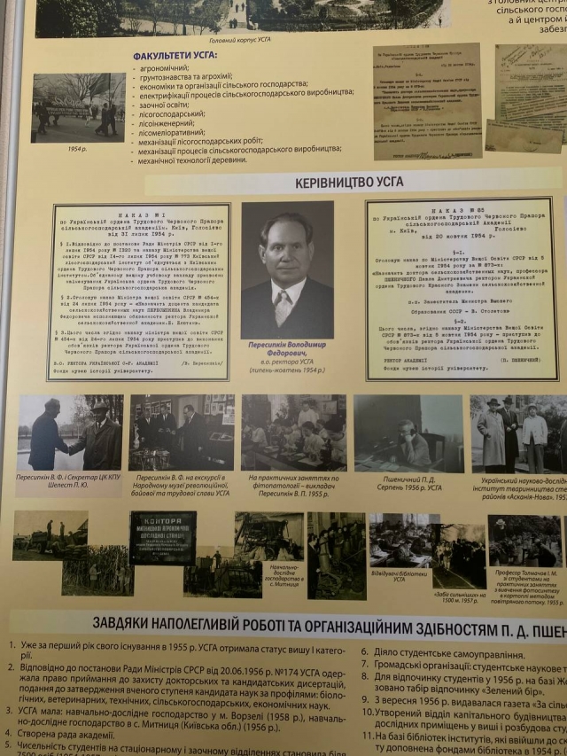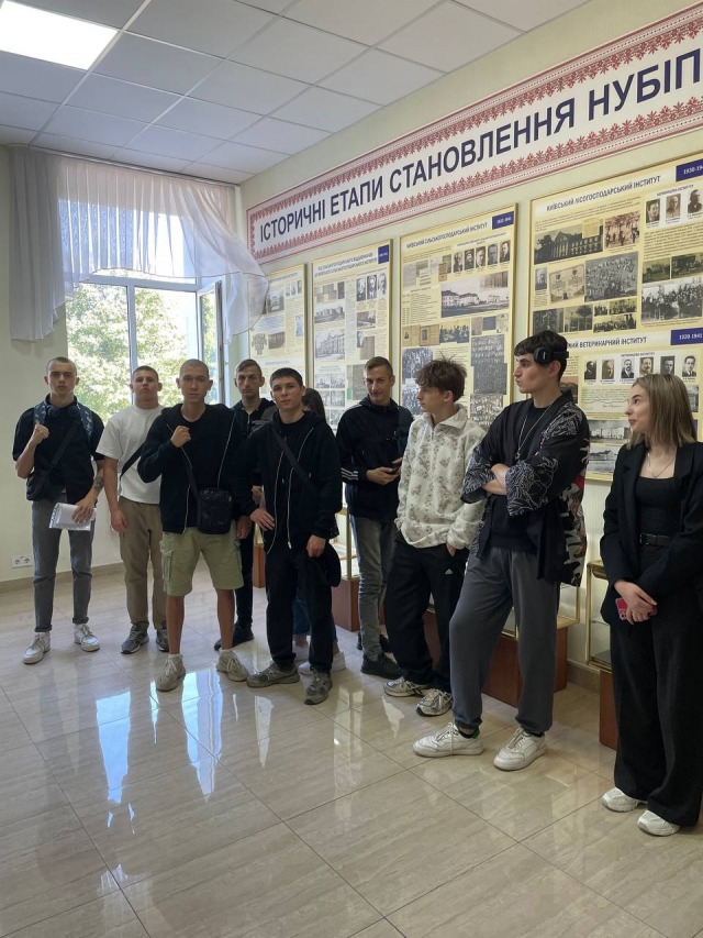 На цікавій і пізнавальній екскурсії, яку провела для нас учений секретар музею Тетяна Миколаївна Чумак, студенти дізнались, що наш університет має дуже давню історію і бере початок з 1898 року, коли у Київському політехнічному інституті було відкрите сільськогосподарське відділення. В 1923 році відділення, що вже мало статус сільськогосподарського інституту, стало самостійним вищим навчальним закладом. Саме з тих, вже далеких часів і почалась славетна історія Національного університету біоресурсів і природокористування України.