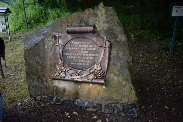 Під час екскурсії ми побували біля одного з найстаріших дерев України – 1100-літнього дуба, який носить ім’я одного з керівників гайдамацького повстання Максима Залізняка. За однією із легенд під його широкою і розлогою кроною у різні часи збиралися повстанці. На теперішній час висота дуба становить 30 м, обхват стовбура на висоті 1,3 м складає 9,05 м.