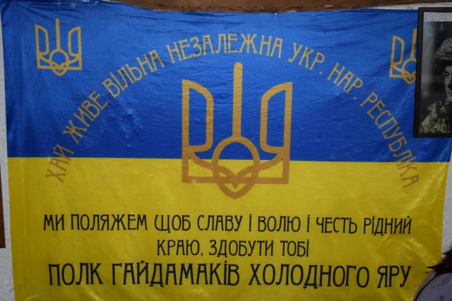 Холодноярці мали два прапори. Один – жовто-блакитний, інший чорний, на одній стороні якого був напис «Воля України або смерть», а на іншій – «і повіє новий огонь з Холодного Яру» – відомі рядки з вірша Т. Шевченка.