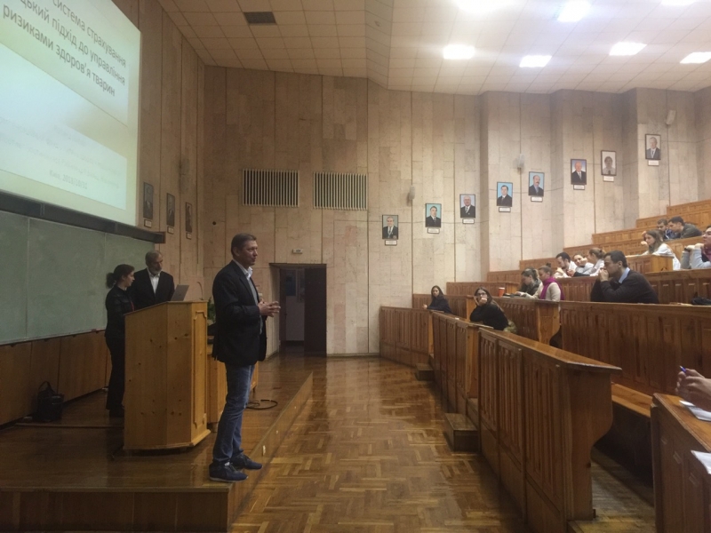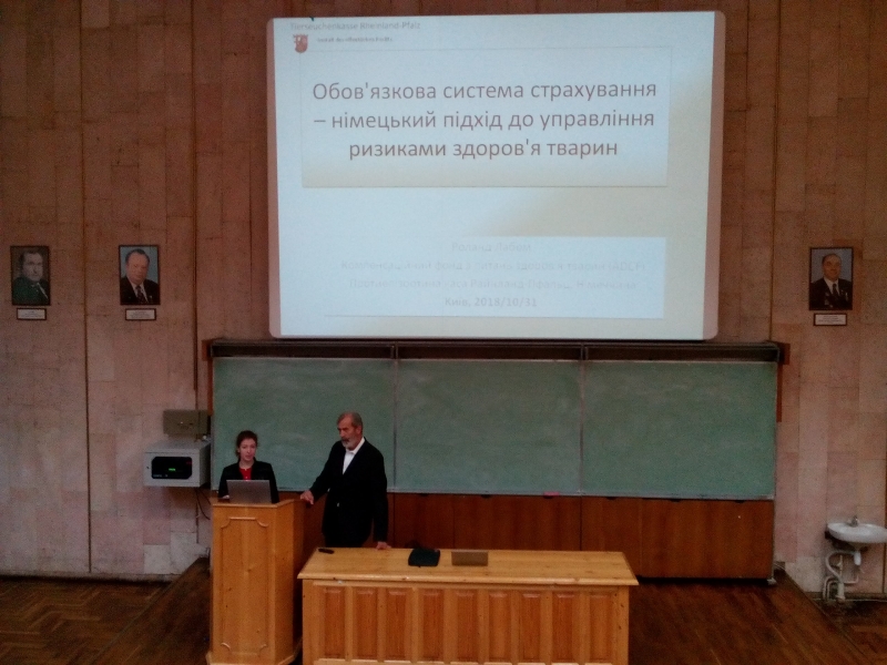 На запрошення кафедри епізоотології та організації ветеринарної справи, за підтримки деканату факультету ветеринарної медицини і Німецько-українського агрополітичного діалогу APD 31 жовтня 2018 року о 10:05 в аудиторії 412 12-го навчального корпусу відбулась відкрита лекція керівника протиепізоотичної каси федеральної землі Райланд-Пфальц, відповідального за захист тварин в комісії федеральної землі Райланд-Пфальц та голови союзу селекціонерів в конярстві Райланд-Нассау др. Роланда Лабом на тему: «Досвід роботи протиепізоотичної каси Німеччини – опції для України».