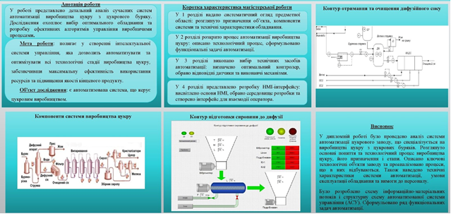 Серед найцікавіших проєктів варто відзначити роботу Валерія Школика, присвячену впровадженню комп'ютерно-інтегрованих технологій у процеси виробництва цукру (науковий керівник – доцент Алла Дудник).