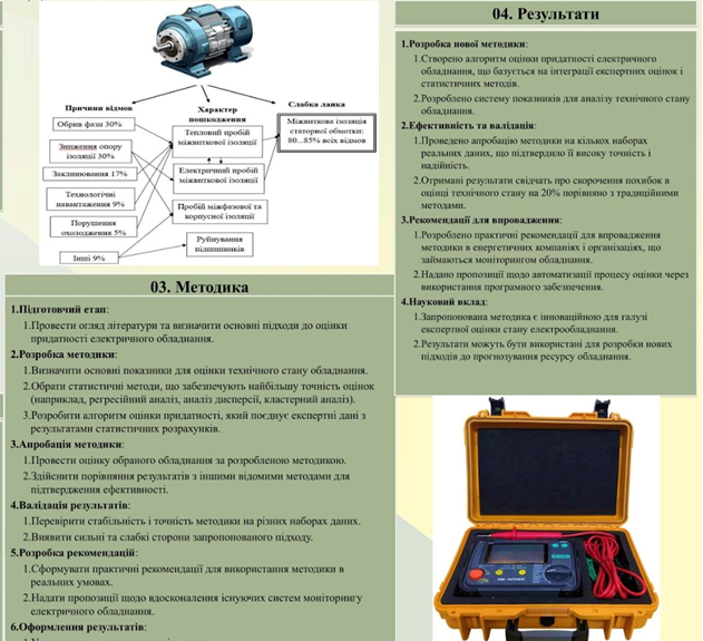 Магістерська робота Іларіона Чайки (науковий керівник – професор Валерій Кривоносов) стосувалась вдосконалення методики експертної оцінки придатності електричного обладнання із застосуванням статистичних методів, Юрія Сідлецького (науковий керівник – доцент Андрій Петренко) представив результати досліджень, які стосувались підвищення ефективності функціонування системи електропостачання з розробкою резервного електроживлення від дизельної електростанції, що є актуальною задачею сьогодення.