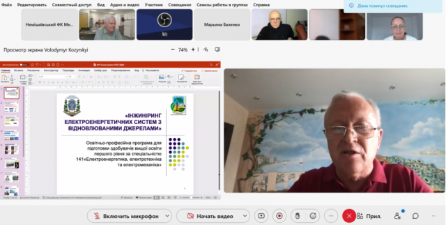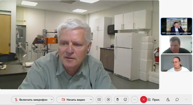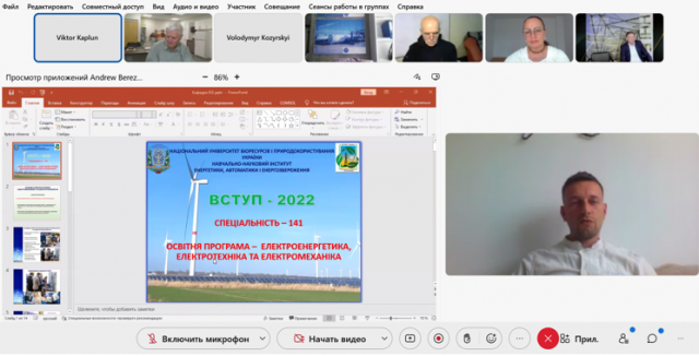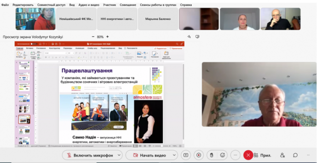 Цього разу формат онлайн-зустрічі дещо відрізнявся: модератор, директор інституту Віктор Каплун та співведучі студенти-старшокурсники Мар’яна Баленко, Альона Нагачевська та Роман Марченко вели трансляцію безпосередньо з навчально-наукових лабораторій ННІ енергетики, автоматики і енергозбереження.