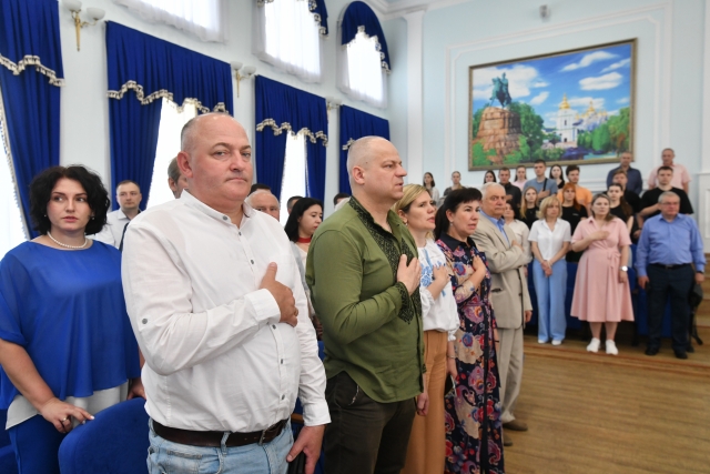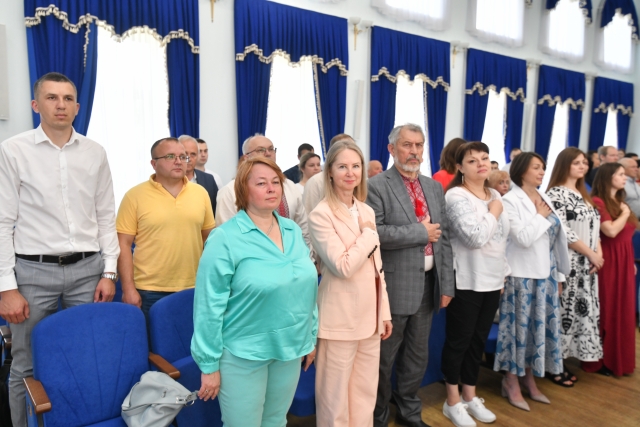 Традиційно відкриття урочистостей розпочали з державного гімну України та вшанування пам’яті випускників полеглим у війні з російським агресором.