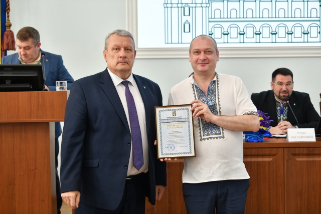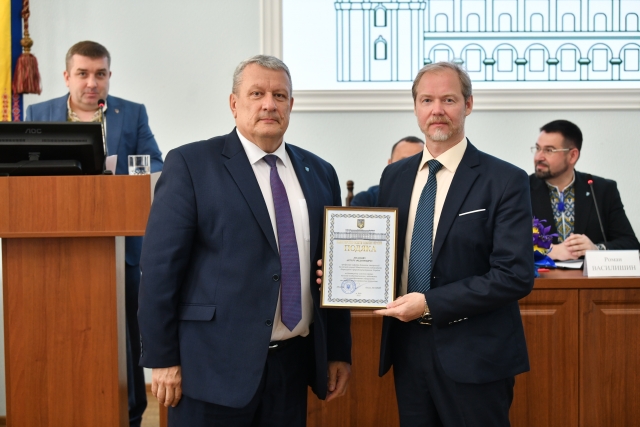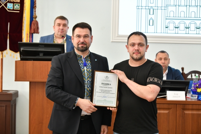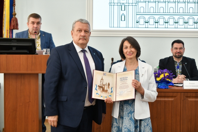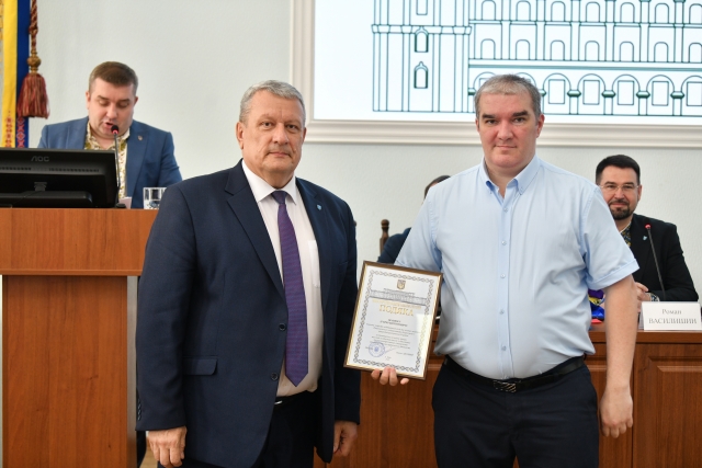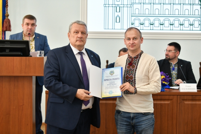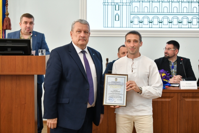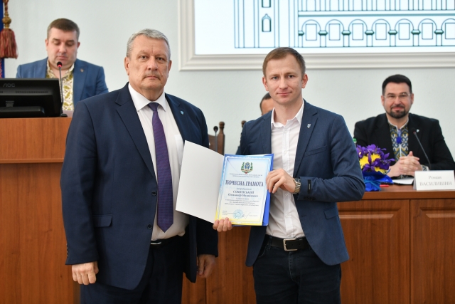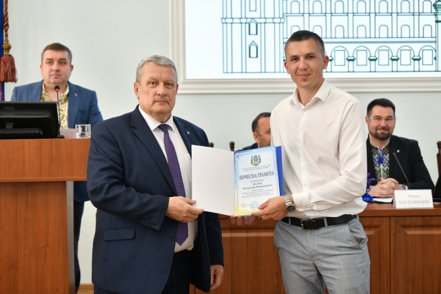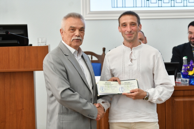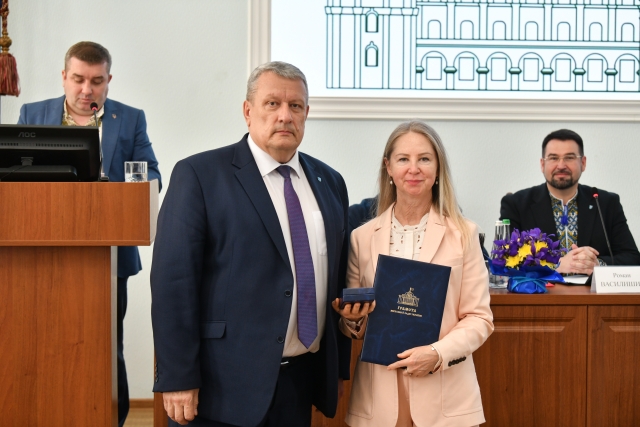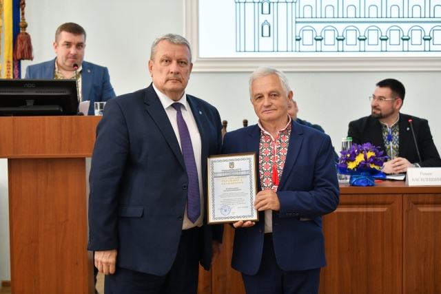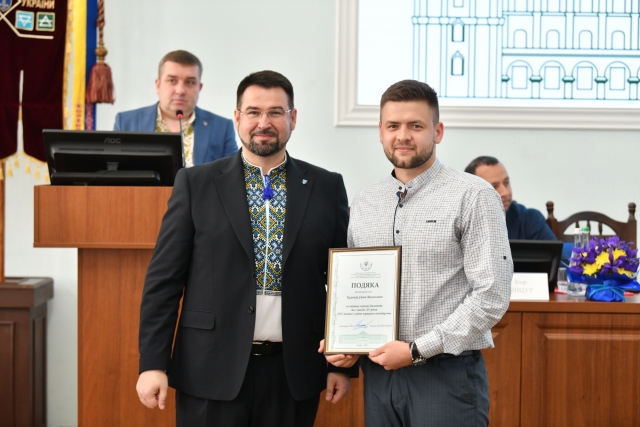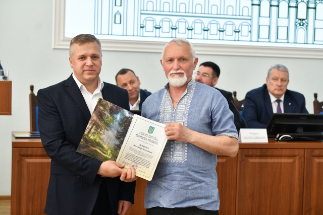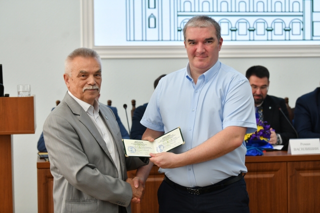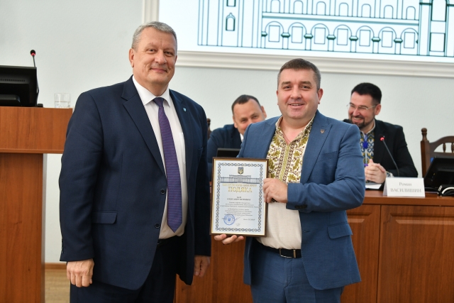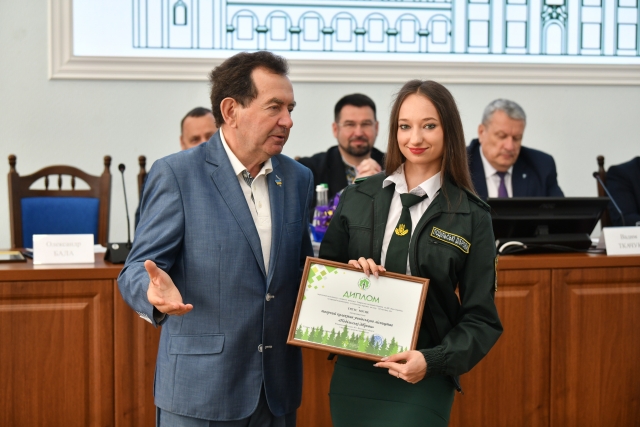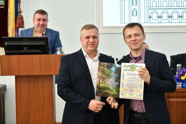 Голова Товариства лісівників України, завідувач кафедри ботаніки, дендрології та лісової селекції Юрій Марчук привітав колег від всього багатотисячного колективу громадської організації та вручив нагороди товариства: дерев’яний науручний годинник – Сергію Зібцеву, Почесні грамоти – Андрію Терентьєву та Вікторії Міндер, Подяку – Денису Зав’ялову.