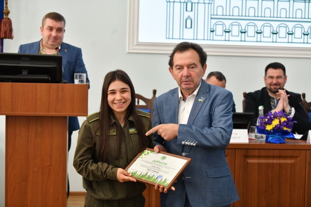 Потім відбулося нагородження студентів-переможців Всеукраїнського конкурсу студентських наукових робіт. Дипломи різних ступенів отримали студенти спеціальностей: лісове господарство, технології деревообробки, садово-паркове господарство, архітектура та містобудування, дизайн. Також були відзначені учні 9 - 11 класів члени Малої академії наук – активні учасники студентських наукових конференцій.