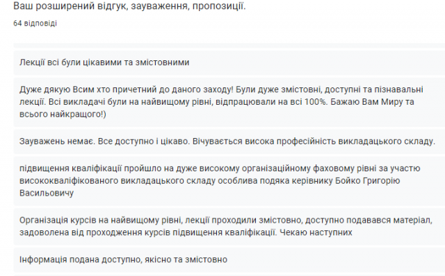 У своїх відгуках слухачі підвищення кваліфікації подякував науково-педагогічному колективу НУБіП за їхню працю та знання, які вони отримали в Університеті.