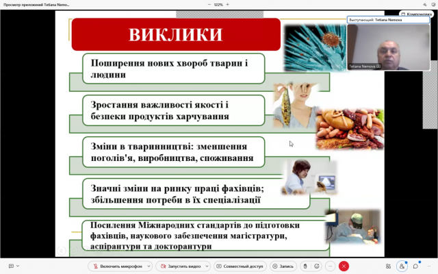 - Перспективи ветеринарної освіти і науки в Україні, як фактор забезпечення здоров'я нації в умовах глобалізації світової економіки.