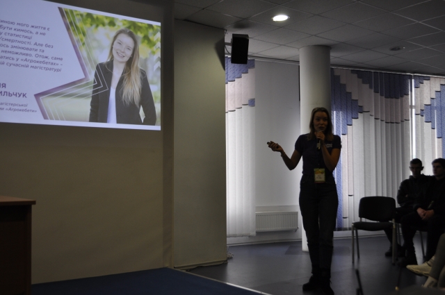 Відповідно до програми заходу, слово було надано студентці проекту "Агрокебети" Анастасії Кирильчук, яка зупинилась на особливостях програми, організації навчального процесу, перевагах навчання за програмою та можливостях, що відкриває ця програма слухачам.