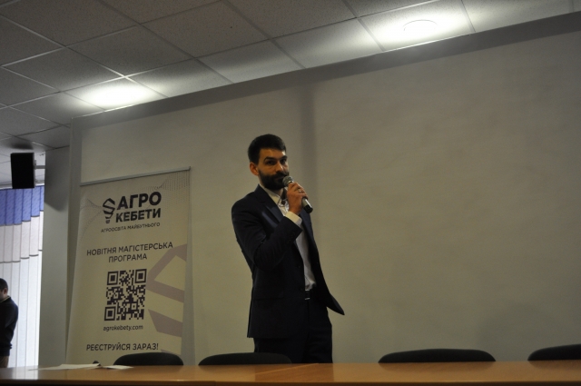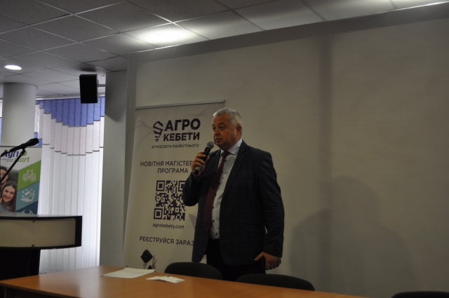 До аудиторії звернувся Анатолій Остапчук, декан факультету аграрного менеджменту НУБіП України, член Наглядової ради проекту "Агрокебети" та закликав усіх присутніх не втрачати шанс та долучатись до програми, щоб мати можливість отримати сучасні знання як від викладачів НУБіП України, так і від представників бізнесу.