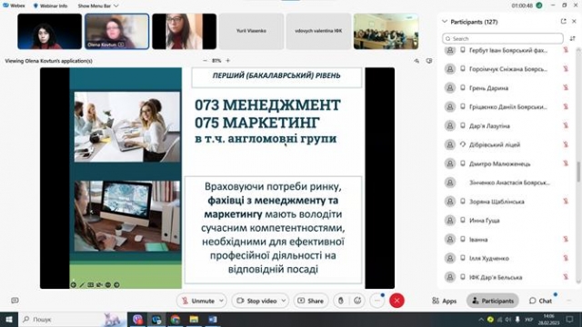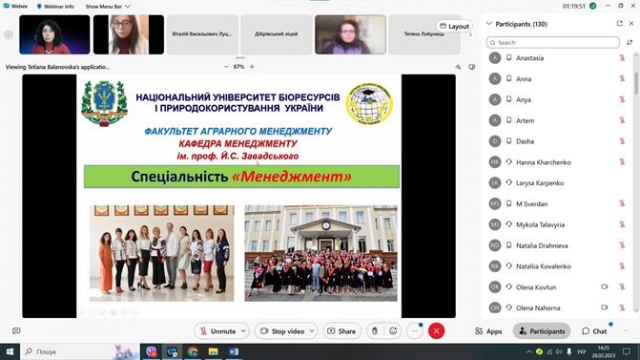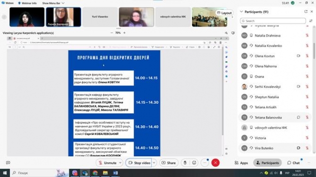 В останній день зими 2023 року факультет аграрного менеджменту - лідер з підготовки фахівців з управління аграрним сектором в Україні - гостинно відчинив свої віртуальні двері для майбутніх вступників – випускників шкіл, ліцеїв, гімназій та їхніх батьків. Уже звичний на сьогодні онлайн формат дозволяє гостям з різних регіонів України відвідувати такі заходи, незважаючи на місце перебування в певний момент часу. Цього року до профорієнтаційної роботи на факультеті аграрного менеджменту долучились студенти - активісти студентської організації ФАМ, які попередньо проводили профорієнтаційні заходи у рідних школах в різних регіонах нашої Батьківщини та ділились своїми враженнями від навчання. Саме тому кількість учасників Днів відкритих дверей цього разу сягнула позначки 138, причому, окрім індивідуальних підключень, присутні були колективні підключення цілих класів Ірпінського, Мукачівського, Боярського, Заліщицького коледжів та Дібрівського ліцею.