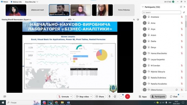 Завідувач кафедри адміністративного менеджменту та ЗЕД Віталій Луцяк ознайомив вступників з дисциплінами, які вони будуть вивчати, зокрема, у рамках обов’язкового блоку та в ході обраних освітніх траєкторій. Віталій Луцяк розповів про активну співпрацю кафедри з членами ради роботодавців та перспективи працевлаштування. Також він зауважив, що студенти беруть участь у роботі лабораторії «Бізнес-аналітики», де вивчають сучасні можливості аналізу даних за допомогою різноманітних IT інструментів.