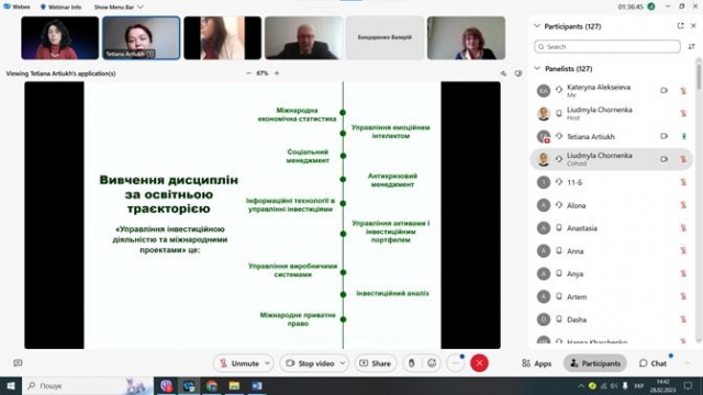 Представник від кафедри виробничого та інвестиційного менеджменту Тетяна Артюх розповіла про здобутки та досягнення цієї наймолодшої, але дуже потужної кафедри факультету. Створена у 2016 році, кафедра виробничого та інвестиційного менеджменту пишається обраним курсом з підготовки проектних менеджерів, зокрема щодо розробки інвестиційних проектів в різних сферах. В рамках повоєнної відбудови очікується збільшення зовнішніх інвестицій в Україну, а попит на проектних менеджерів буде зростати. В ході підготовки фахівців кафедра постійно залучає студентів у розробку проектів та участі у щорічному конкурсі проектів «Від ідеї до успіху» з залученням в роботу журі роботодавців. Завдяки цьому студенти мають можливість апробувати свої проектні ідеї на практиці. Кафедра також веде активну міжнародну роботу та сприяє стажуванню та навчанню студентів в університетах Європи.
