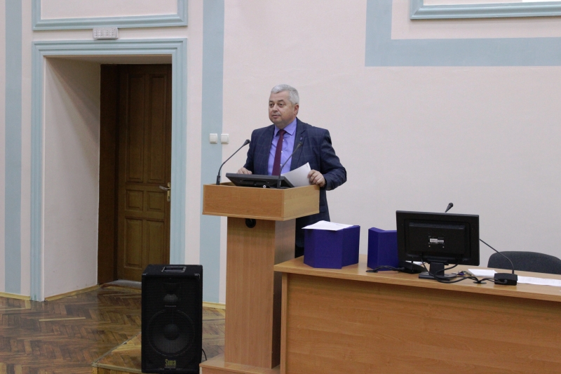 До привітального слова були запрошені завідувачі кафедрами: адміністративного менеджменту та ЗЕД, доктор економічних наук, професор, член-кореспондент НААН України, заслужений діяч науки і техніки України Валерій Павлович Галушко; менеджменту ім. професора Завадського, доктор економічних наук, професор, заслужений працівник освіти України Василь Павлович Горьовий; маркетингу та міжнародної торгівлі, доктор економічних наук, професор Ярослава Степанівна Ларіна та професор кафедри виробничого та інвестиційного менеджменту, доктор економічних наук, професор Тетяна Леонідівна Мостенська.