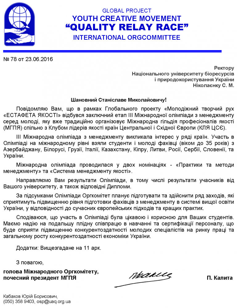 Факультет харчових технологій на чолі із кафедрою стандартизації і сертифікації с.-г. продукції лауреати і переможці III Міжнародної олімпіади з менеджменту серед молоді вт, 5 лип 2016 - 03:00