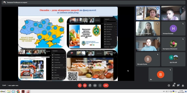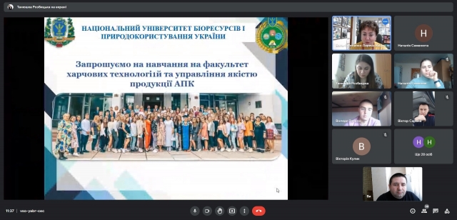 Факультет харчових технологій та управління якістю продукції АПК Національного університету біоресурсів та природокористування України, традиційно, як і було заплановано, 8 грудня 2022 року провів Онлайн-день відкритих дверей для школярів, студентів технікумів, коледжів та батьків, з використанням платформи Google Meet, щоб гості могли отримати якомога більше інформації про спеціальності, освітні програми, стратегію університету, умови та матеріально-технічне забезпечення, можливості для студентів та дозвілля, яке допоможе розвивати світогляд і створювати найміцніші дружні зв’язки, зорієнтуватися у розмаїтті спеціальностей, вибрати найбільш актуальну і потрібну професію, отримати поради та консультації фахових викладачів-практиків, зануритися у справжнє студентське життя навіть в умовах карантину, війни.