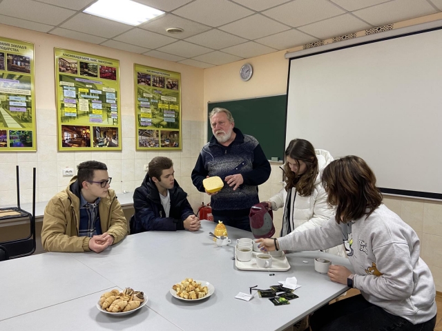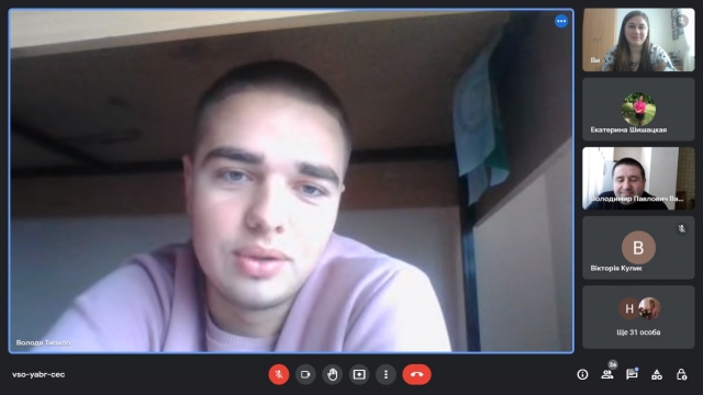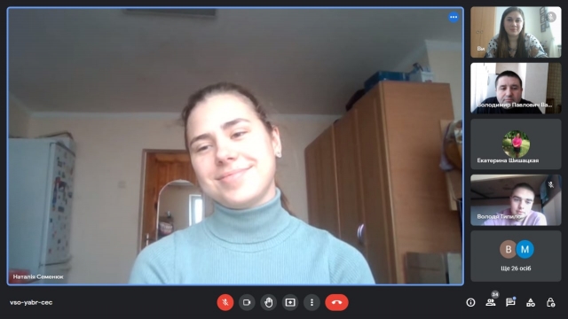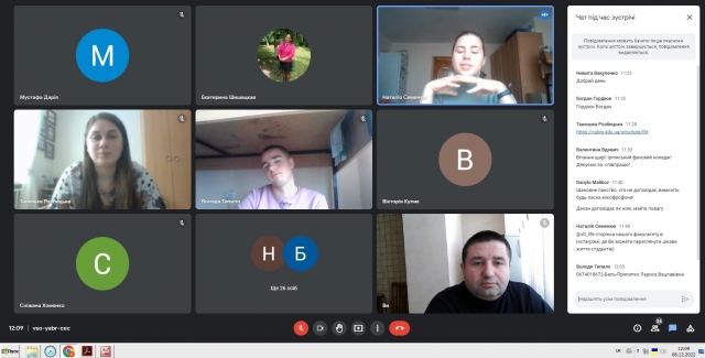 Голова студентської організації факультету, студент 2 курсу Володимир Типило розповів присутнім про студентське життя в університеті, про роботу студентської організації, дозвілля, військову кафедру, автошколу про все, що було показано в попередньо представлених презентаціях, запросив абітурієнтів обов’язково вступати лише на наш факультет, приєднатися до них в групу і приймати участь у вебінарах, конференціях та інших активних заходах.