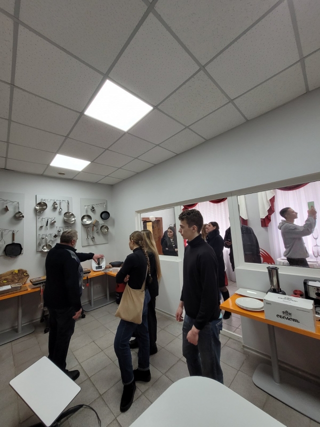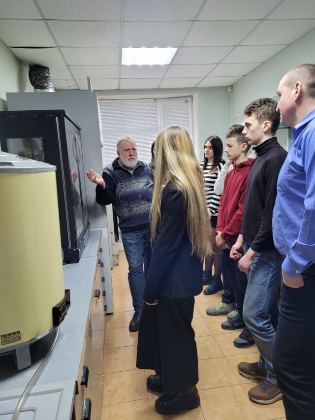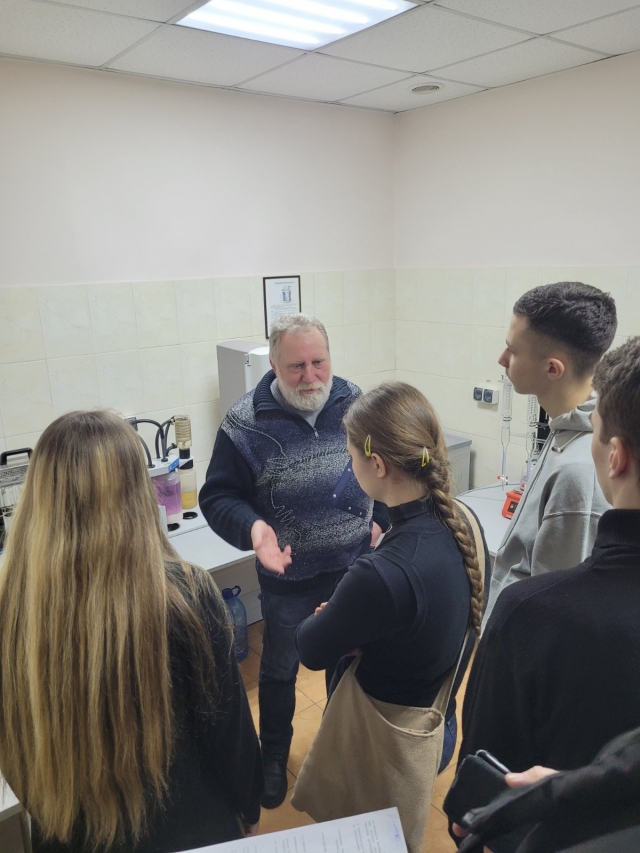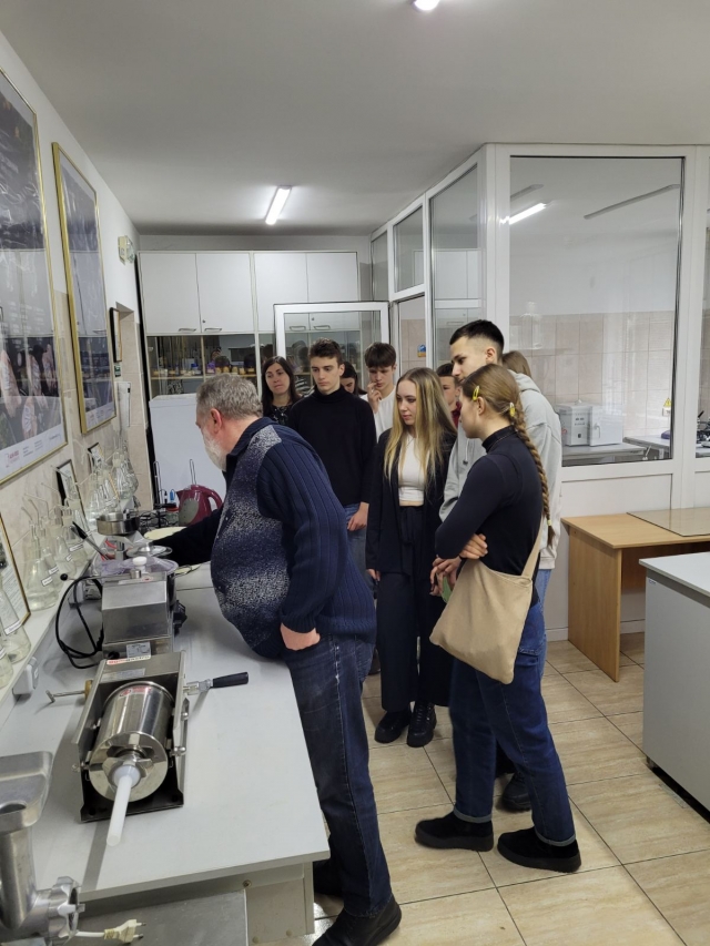 Олександр Савченко провів екскурсію абітурієнтам лабораторіями кафедри, в яких вони матимуть можливість навчатись і познайомив із роботою сучасного обладнання: фотометр портативний; вологомір зерна; вимірювач білісності борошна; вимірювач деформації клейковини; рефрактометр; прилад Чижової; центрифуга лабораторна клінічна; муфельною піч; аналітичні ваги; портативний рН-метр; автоматична бюретка; сушильна шафа; прилад Журавльова; віскозиметр; прилад для визначення активності води; електроактиватор; солемір; машина для подрібнення кісток; спектрофотометр; мінералізатор; автоматизований прилад для визначення клітковини; термостат; ротаційний випарник; пенетрометр; кутер; шприц; пурка; автоклав; прилад для визначення числа падіння; прес для гамбургерів; тендерайзер; поляриметр; діафаноскоп; люмініскоп Філіна; прилад для визначення якості молока "Ekomilk" та іншими.