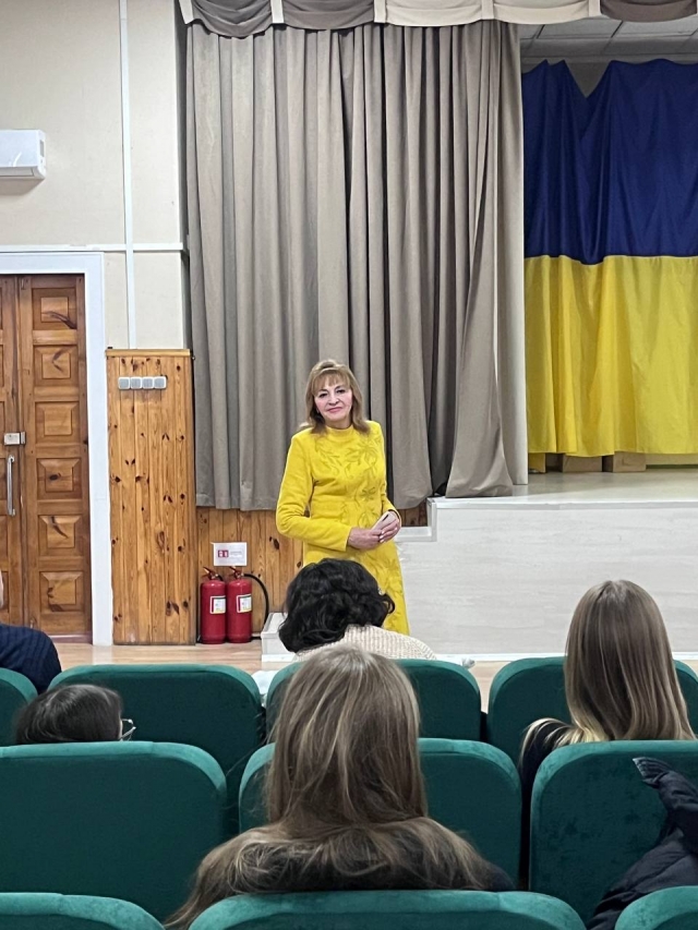 Заступник директора з навчально-виховної роботи Оксана Іванівна Янішевська організувала на цю зустріч учнів трьох випускних класів ліцею. Юлія Петрівна попередньо надала керівництву школи презентацію про НУБіП України для ознайомлення учнями з історією розвитку університету, унікальне місце розташування університету, зручну транспортну розв’язку, прекрасну паркову зону з ботанічним садом для навчання та відпочинку, забезпечення гуртожитками, які знаходяться в зеленій зоні розташування навчальних корпусів, наявністю їдалень, спортивними залами, різноманітними гуртками і т.д. І головне – про високий рейтинг НУБіП України серед університетів України!