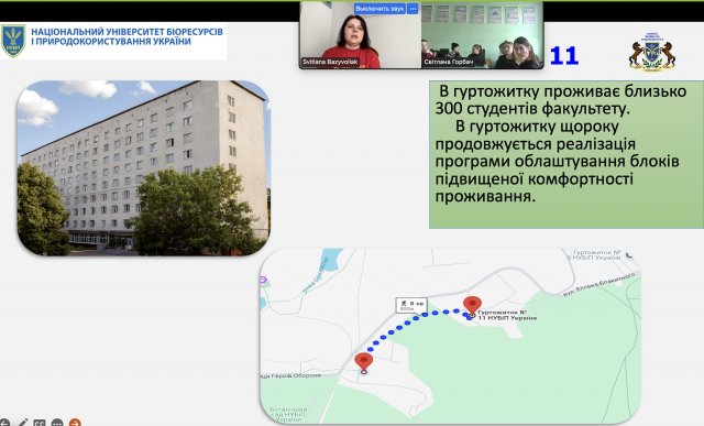 Учні також дізналися про можливості проходження практик як на базі університетських господарств, так і у провідних аграрних підприємствах України. Особливу зацікавленість викликала інформація про міжнародні можливості для студентів: програми академічної мобільності, обмінні навчальні курси та практики за кордоном у партнерських університетах і компаніях. Університет пропонує комфортні умови проживання в сучасних гуртожитках, де створено всі необхідні умови для навчання та відпочинку. Студенти мають можливість проживати у сучасних гуртожитках, а також користуватися зручностями, такими як читальні зали, кухні, спортивні та відпочинкові зони. Гуртожитки розташовані поблизу навчальних корпусів, що робить пересування територією зручним та швидким.