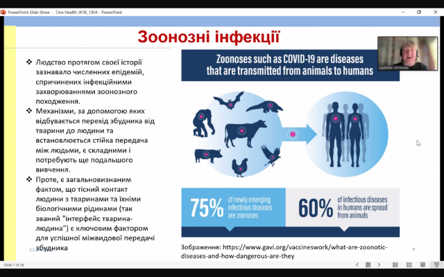 - One Health і контроль інфекцій. Інфекційні хвороби як спільний виклик для людини, тварин і довкілля. Роль сучасних генетичних методів у моніторингу та забезпеченні безпеки харчової продукції.