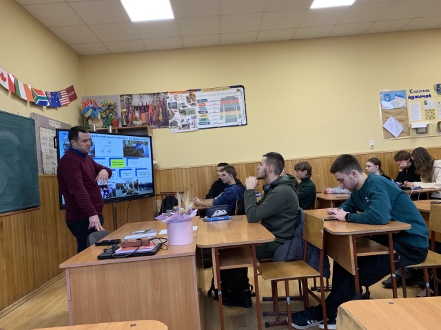 З метою профорієнтації та налагодження комунікації з потенційними абітурієнтами доцент факультету ветеринарної медицини Олексій Мельник відвідав КЗЗСО «Ліцей № 17 Хмельницької міської ради».