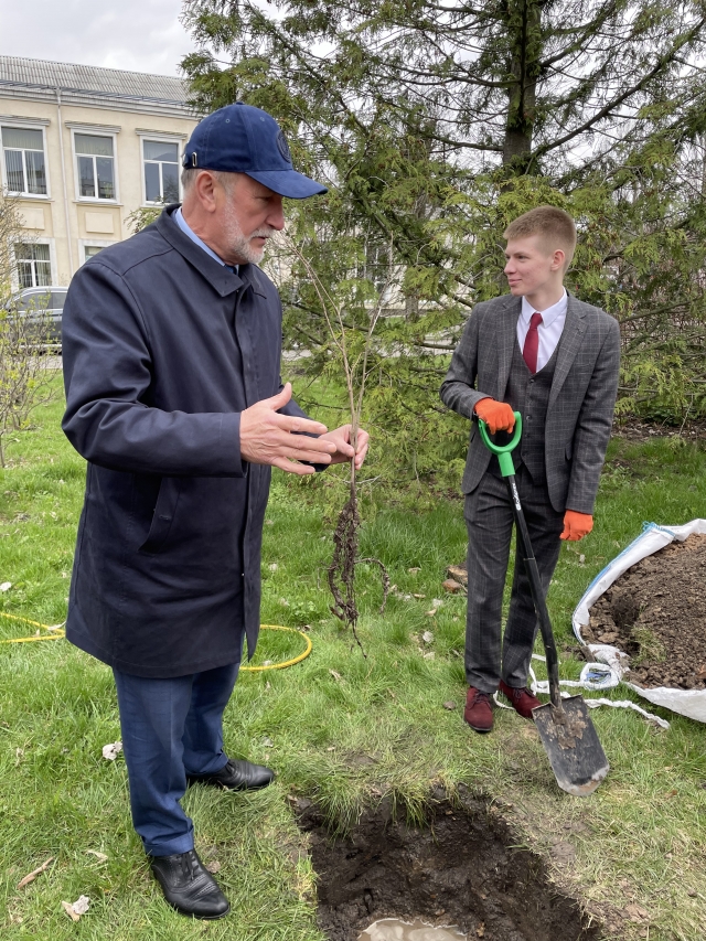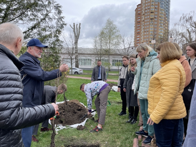Проректор з науково-педагогічної роботи Сергій Кваша провів свого роду майстер-клас для студентів факультету захисту рослин, біотехнології та екології, де не тільки детально розповів, а й показав, як правильно висаджувати дерева та доглядати за ними.