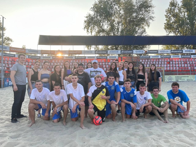Останній тиждень літа на факультеті харчових технологій та управління якістю продукції АПК розпочали активно. Бажаючі студенти та викладачі зібрались разом на піску Київського гідропарку, аби провести вечір за мʼячем на піску - зіграти у пляжний футбол!