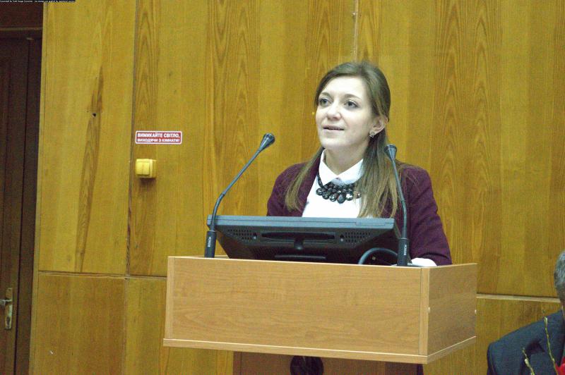 Голова студентської організації факультету Данько Людмила продемонструвала відеоролик, відзнятий студентським активом, розповіла про цікаве позааудиторне життя студентів ФАМ, можливості не лише отримувати якісну освіту, а й реалізовувати свої творчі та спортивні здібності.