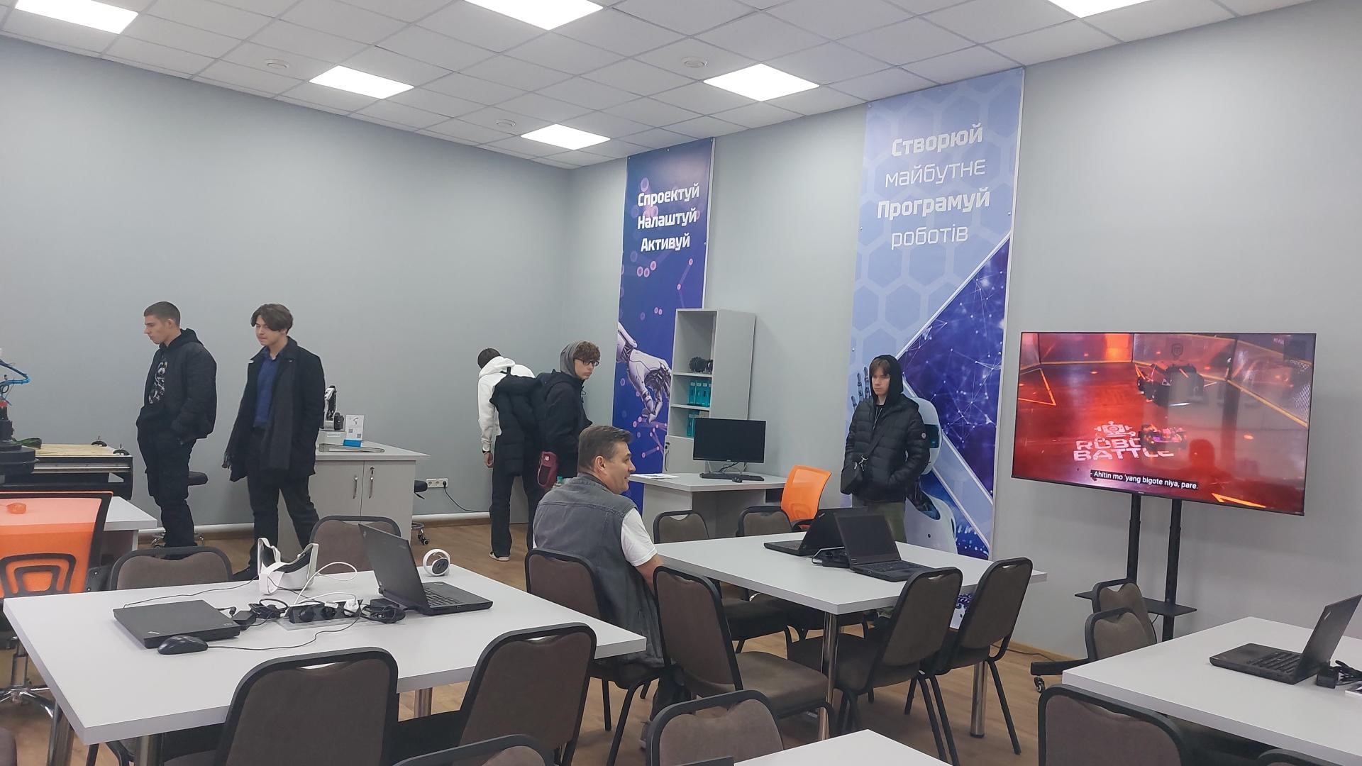 Студентки кафедри комп’ютерної інженерії, мереж і кібербезпеки продемонстрували можливості обладнання VR та інших приладів лабораторії програмування робототехніки.