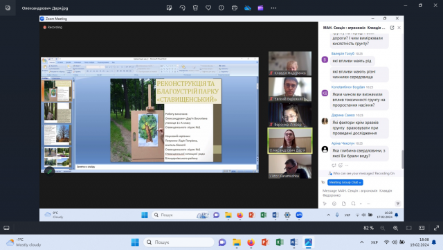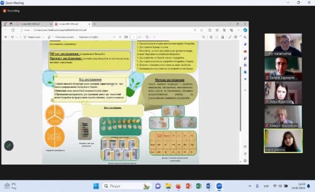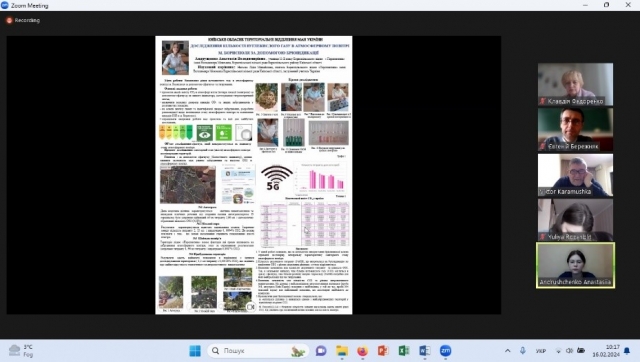 Традиційно наприкінці зими проходять захисти наукових робіт школярів, які пройшли до ІІ етапу Всеукраїнського конкурсу-захисту науково-дослідницьких робіт учнів-членів МАН України. Цьогорічна секція з «Охорони довкілля та раціонального природокористування» наукового відділення «Екології та аграрних наук» була представлена 15-ма учасниками, що протягом двох днів змагалися між собою за призові місця. Оцінювання робіт здійснювалося компетентними членами журі у складі голови Карамушки Віктора Івановича, кандидата біологічних наук, доцента, завідувача кафедри екології факультету природничих наук Національного університету «Києво-Могилянська академія» та членів комісії – Бережняка Євгенія Михайловича, кандидата сільськогосподарських наук, доцента кафедри екології агросфери та екологічного контролю Національного університету біоресурсів і природокористування України і Розенбліт Юлії Василівни, кандидата біологічних наук, молодшого наукового співробітника відділу геоботаніки та екології Інституту ботаніки ім. М.Г. Холодного. Відповідальний секретар секції – Федоренко Клавдія Василівна, методистка Київського обласного комунального позашкільного навчального закладу «Мала академія наук учнівської молоді». Що стосується тематик робіт, які захищалися молодими дослідниками, то вони були доволі різноманітними. Спочатку члени комісії самостійно кожний ознайомилися із підготовленими науковими роботами та оцінили їх за відповідними критеріями – «аргументованість вибору теми дослідження», «повнота розкриття теми», «обґрунтування використовуваних джерел літератури», «рівень виконання завдань відповідно до мети досліджень», «відповідність вимогам оформлення».