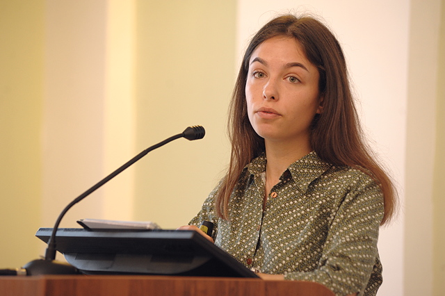 Староста гуртка Марія Чечко розповіла про підприємства з якими співпрацює гурток кафедри та про можливість гуртківців практично навчитися впроваджувати наукові дослідження. Доповідач наголосила, що завдяки практичним навичкам здобутим під час навчання 90% випускників кафедри успішно працевлаштовуються в провідні підприємства за фахом.